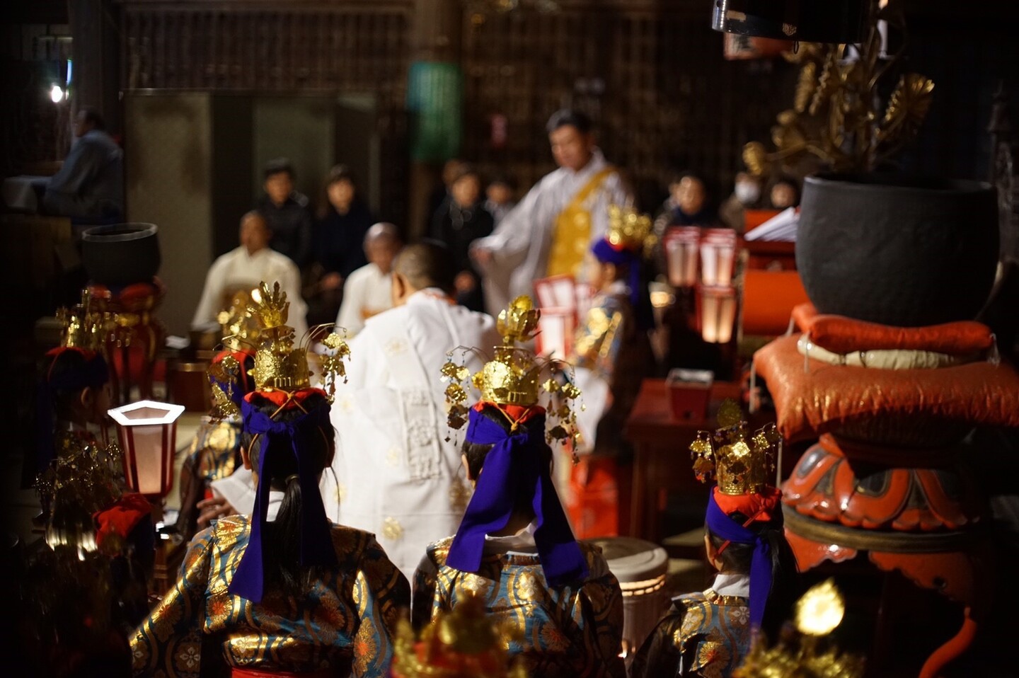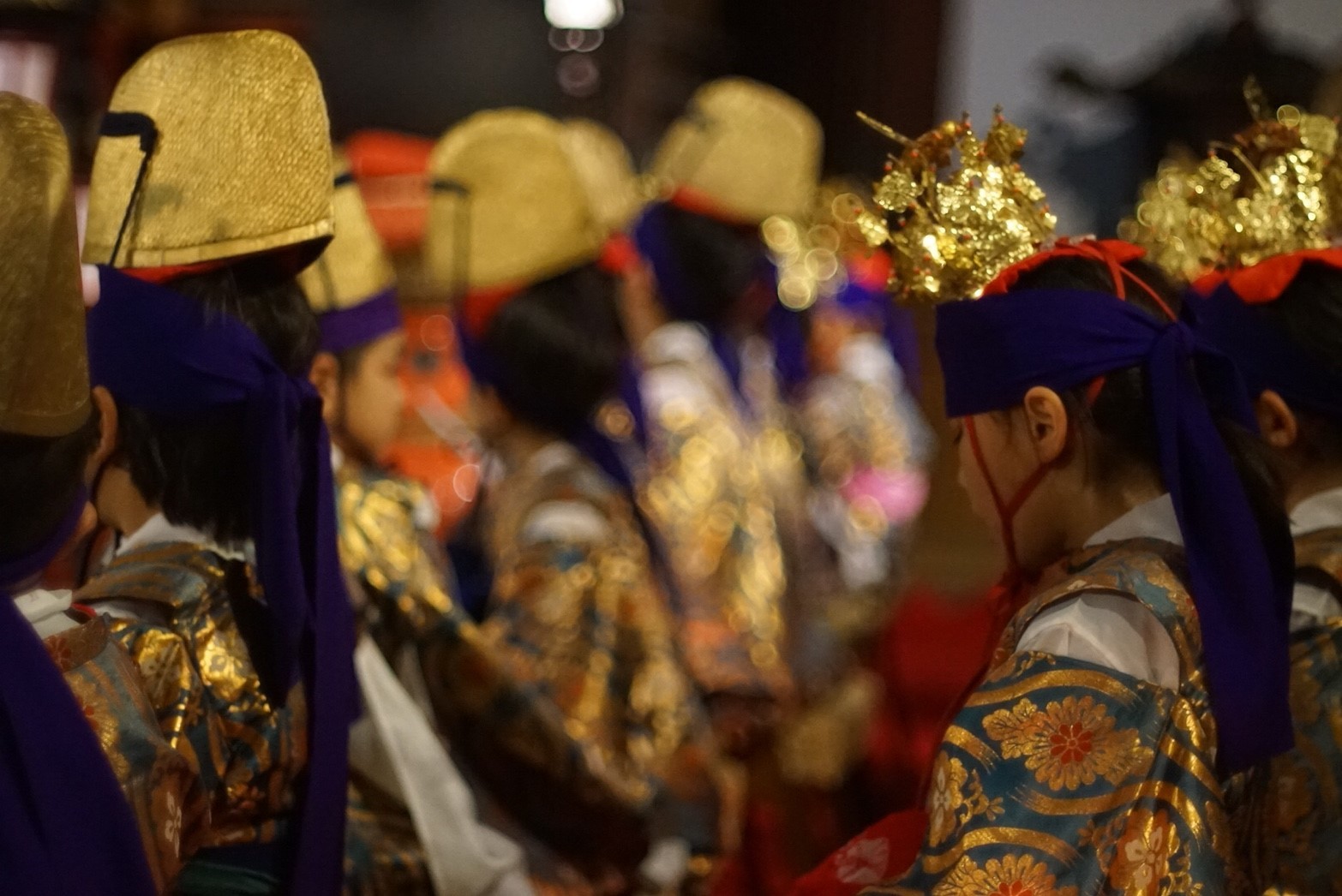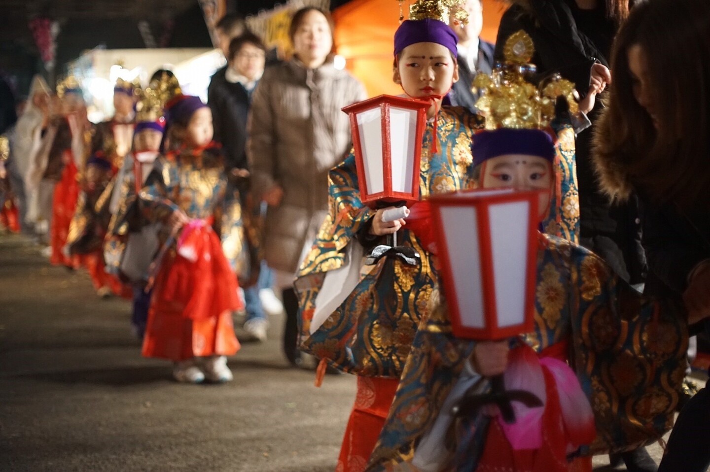 子どもの発育改善・無病息災・智慧明瞭を願い、祭典に花を添える天童稚児出仕者を募集しています。境内露店や大勢の参拝者、竹灯籠点灯の中、行列を組み大法要に出仕、荒行僧による修法加持を受けます。ご家族ご一緒に行列し、御祈祷を受けることができます。
