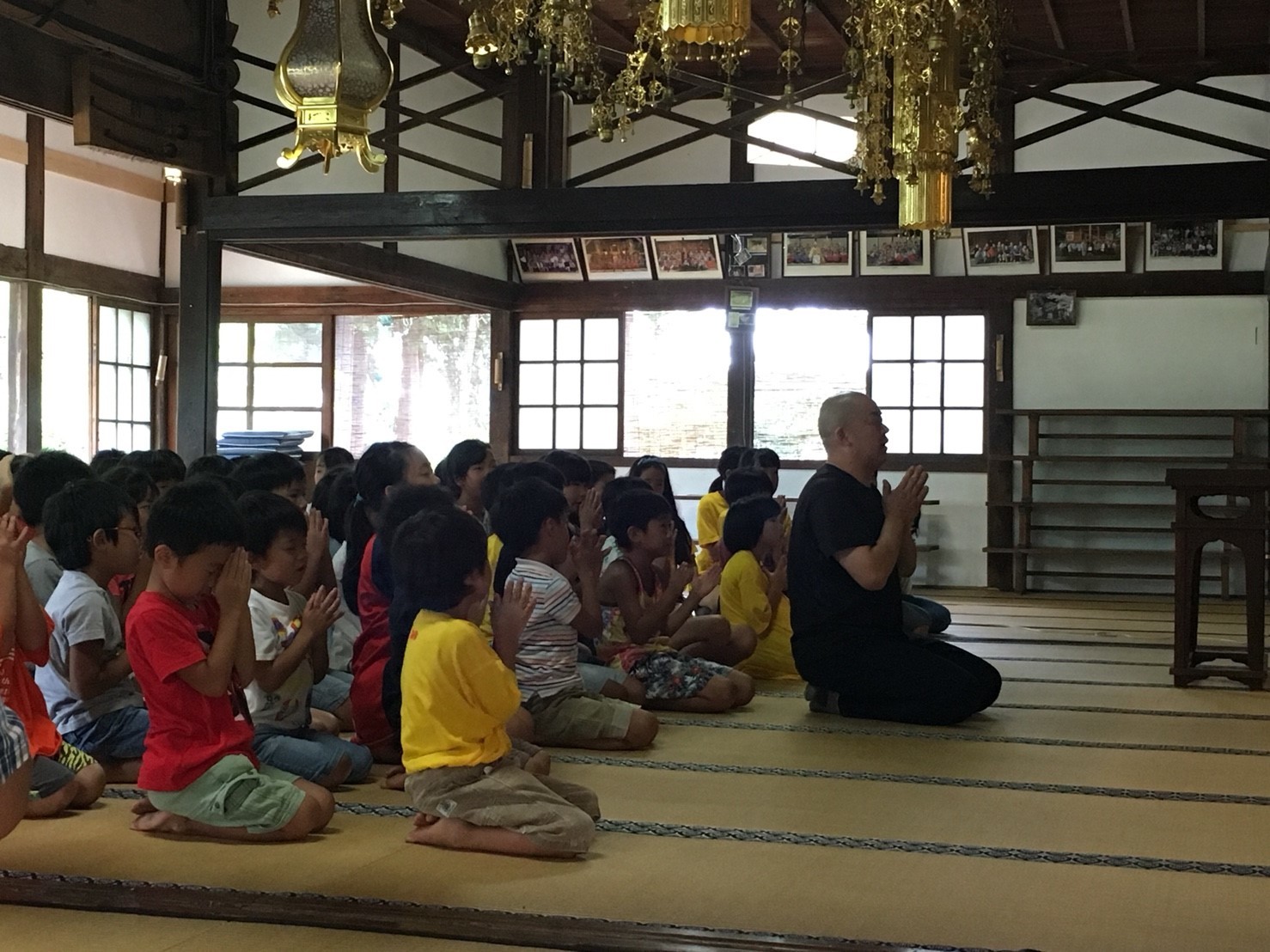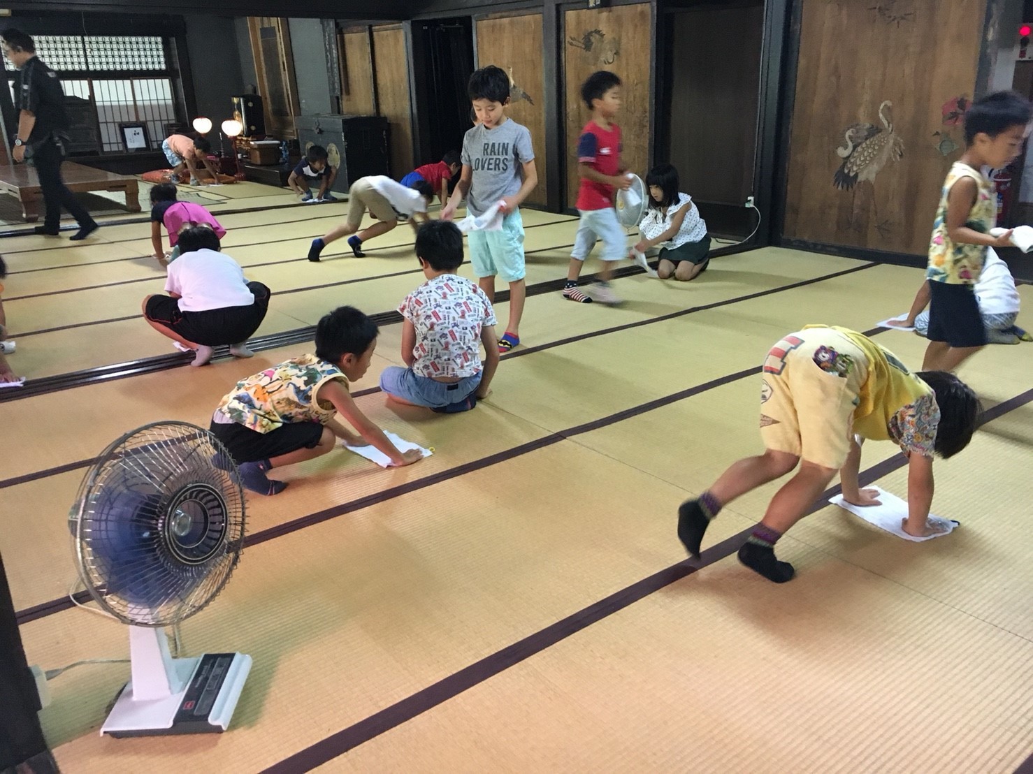 始めの会→道場整備(掃除)→勉強→休み時間→勉強→昼食準備(掃除)→お昼ご飯→解散