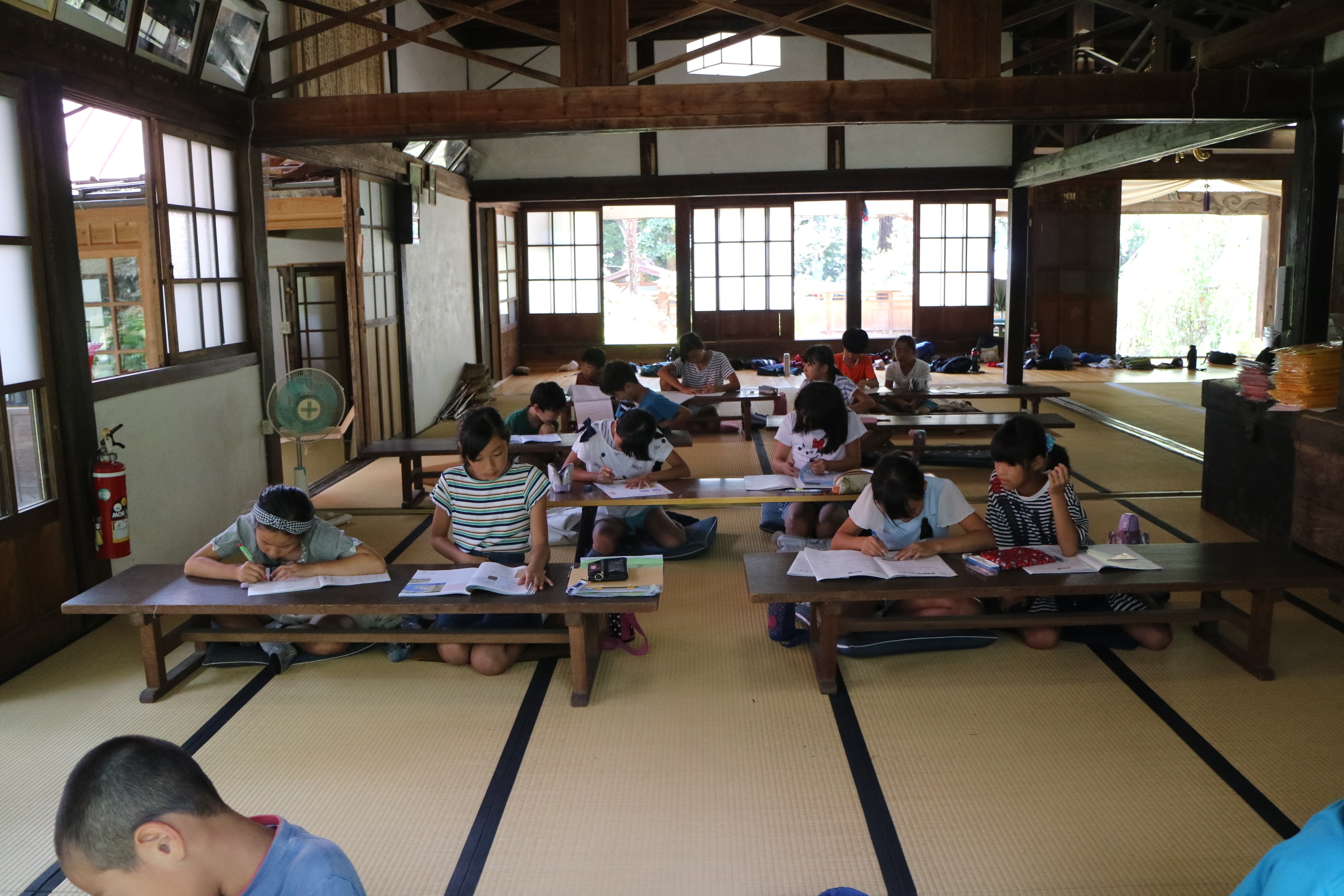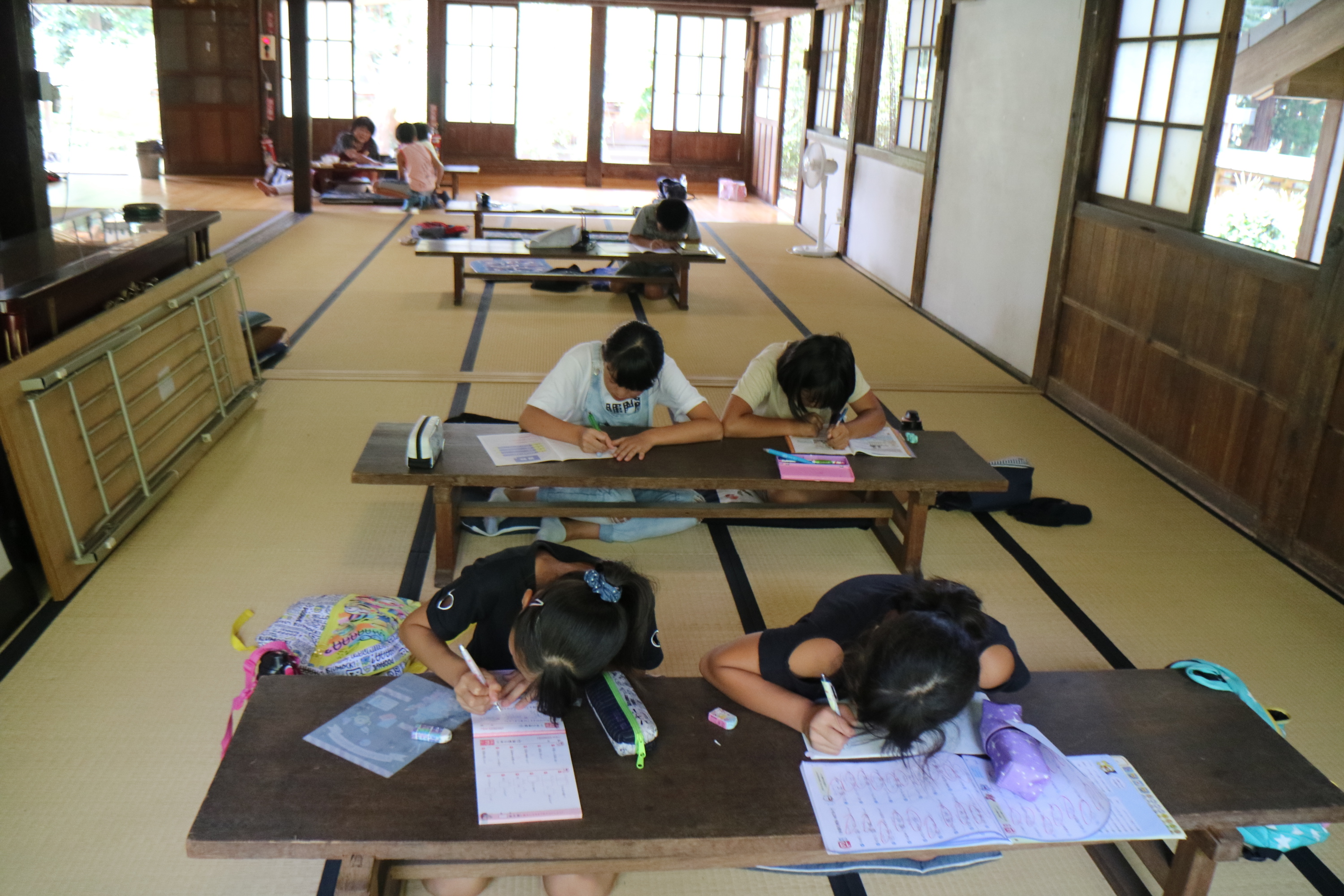 鳥やセミの声を聞きながら、みんなで静かに勉強の時間。