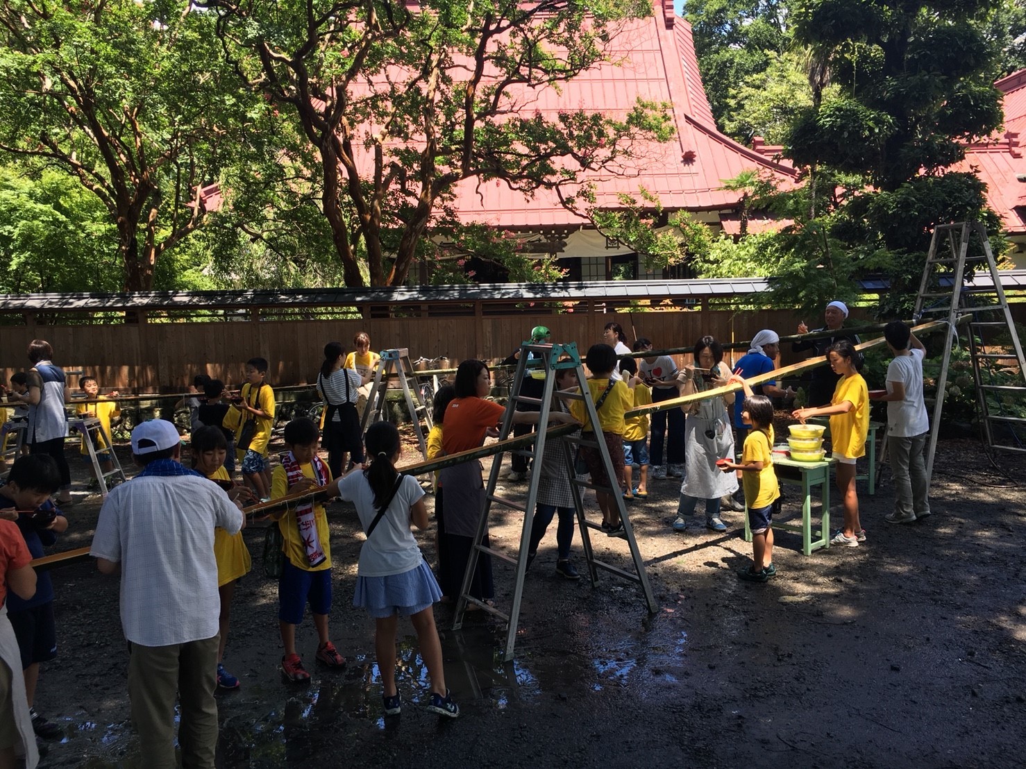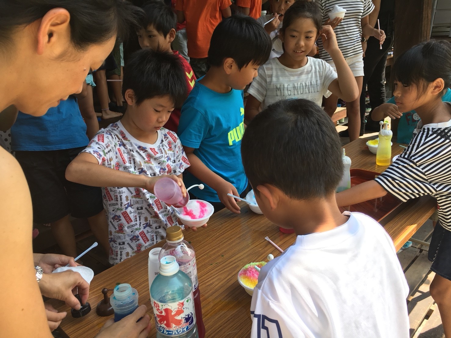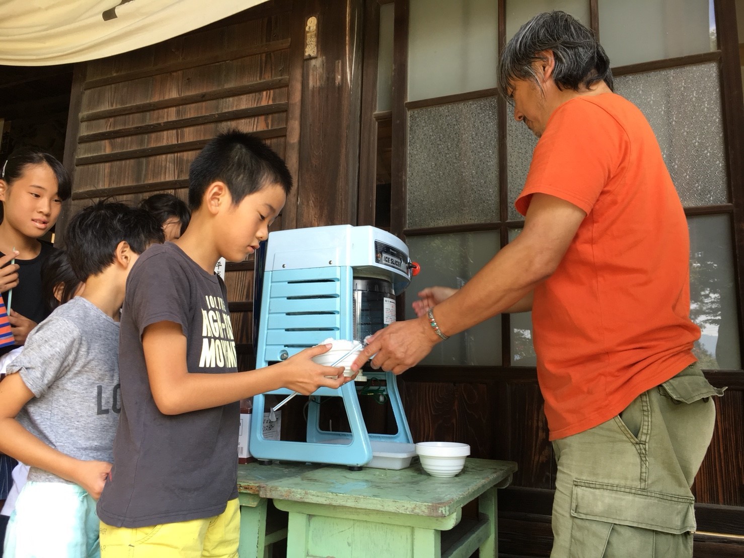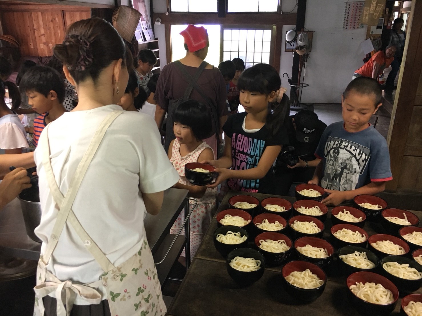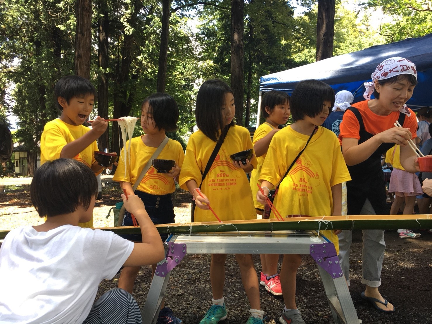 3日目のお昼はお父さんやお母さん、お迎えのご家族の方々も一緒に流しそうめんをしました。総勢100名ほどの流しそうめんです。