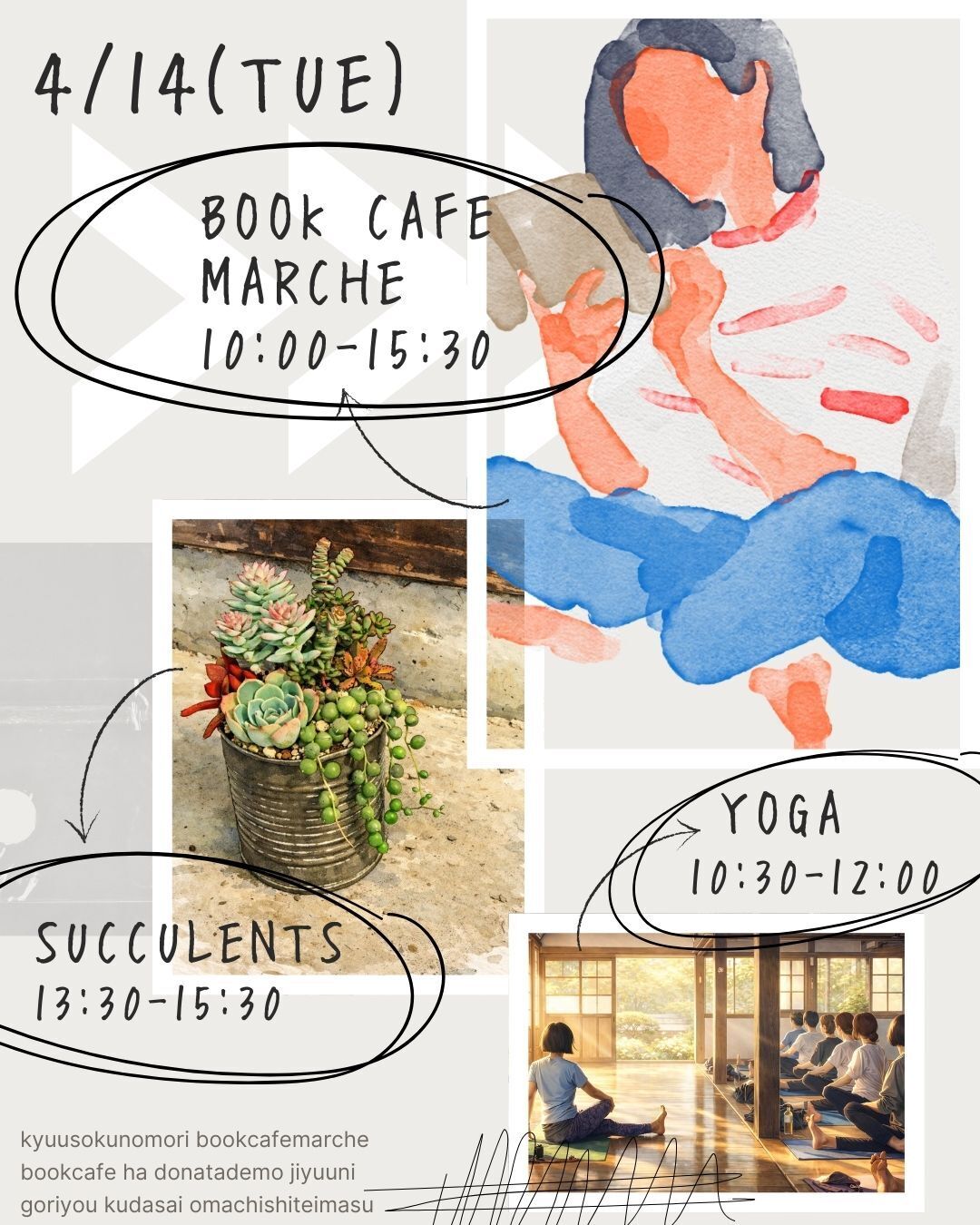 休息の森 ブックカフェ マルシェではヨガ、ミニマーケット等が開催されています