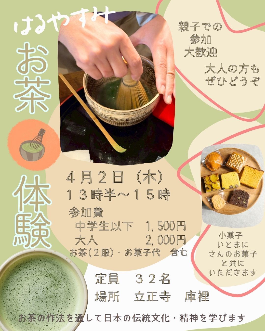 ・春休みお抹茶体験 13:30-15:00 (場所:庫裡)